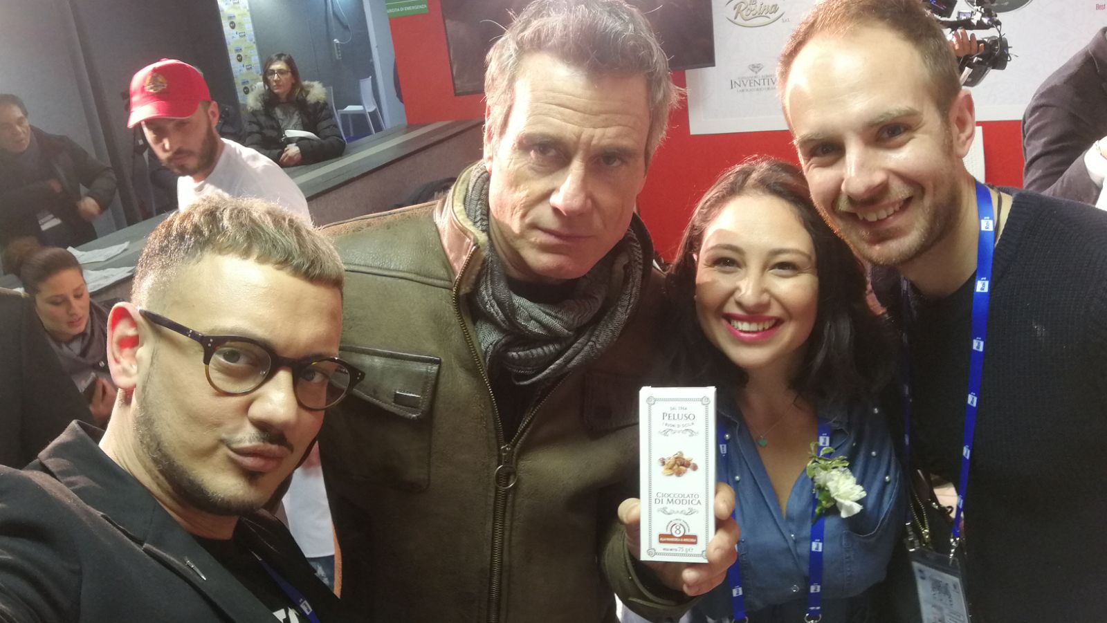 La redazione di Radio Rtm ha incontrato, nella pausa pranzo, il giornalista di Striscia la notizia Jimmy Ghione e gli ha donato il cioccolato modicano di Peluso.