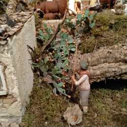 Accanto altri bimbi intenti a giocare (alcuni su una discesa ripida con i carrammatti) e altre scene di vita quotidiana (la preparazione ro strattu, la raccolta delle arance, la pesca nel torrente, un asino caduto a terra ed il contadino disperato perché si disperde la merce, eccetera). Lombardo ha detto che il suo è un PRESEPE VERGHIANO, perché come Bongiovanni Vaccaro racconta la vita degli umili con la stessa dovizia e timbro dell’autenticità che richiama il verismo verghiano. In alto, a dominare la scena, la casa del “ricco”, del nobile, che sovrasta tutto.