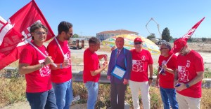 Lo Schifani Tropical Tour, promosso dalla Fillea CGIL e dalla CGIL Sicilia, ha fatto trappa stamani a Ragusa, all’ingresso del Foro Boario dove sono in corso i lavori de Polo fieristico, presenti Salvatore Tavolino, segretario generale della FILLEA CGIL, Francesco Maltese, segretario confederale della CGIL di Ragusa e un gruppo di lavoratori edili. “Seguilasagoma” è … Leggi tutto Schifani Tropical Tour: tappa iblea della provocatoria iniziativa Cgil contro l’emergenza caldo nei cantieri