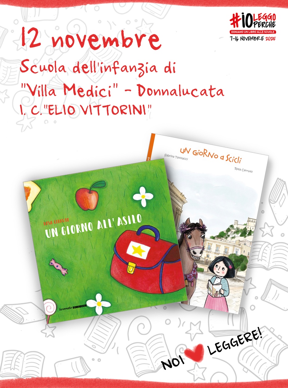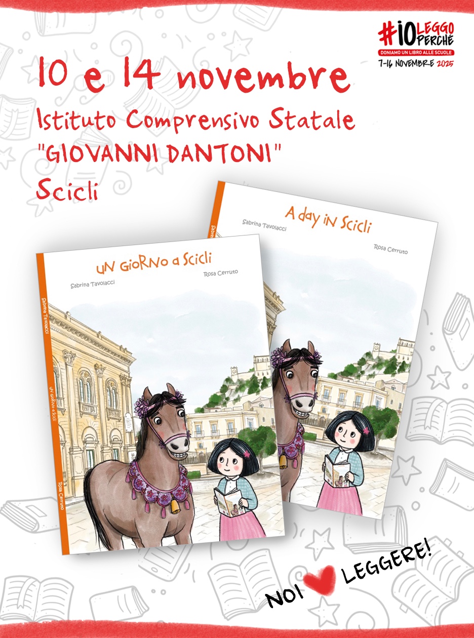In occasione della manifestazione nazionale “Io leggo perché”, il 10, 12 e 14 novembre sarà presentata a Scicli presso gli Istituti Comprensivi “Giovanni Dantoni” e “Elio Vittorini”, plesso di Donnalucata, la guida illustrata “Un giorno a Scicli” di Sabrina Tavolacci e Rosa Cerruto. Le due autrici hanno accolto con entusiasmo l’invito delle scuole sciclitane a presentare il “racconto guida” proprio in occasione della settimana di “Io leggo perché”, iniziativa che, giunta alla decima edizione, arricchisce o crea biblioteche nelle scuole delle città italiane.
