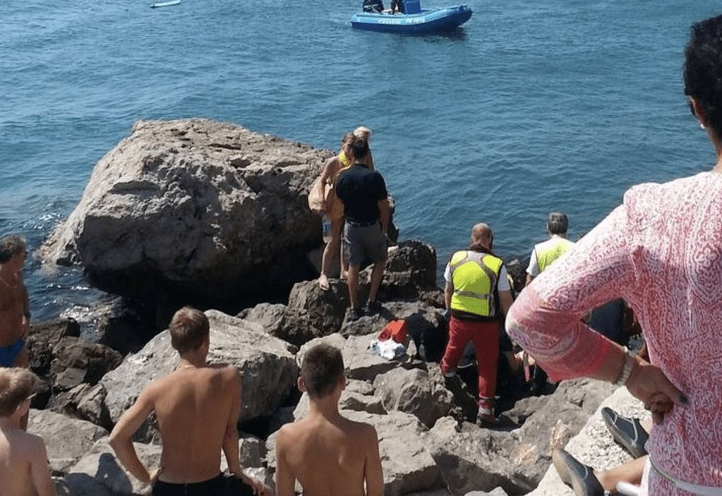 Il ragazzo ha perso l’equilibrio e ha scivolato sugli scogli, sbattendo violentemente la testa. In un attimo, ha perso i sensi, e l’aria festosa della spiaggia si è trasformata in un silenzio preoccupato. Fortunatamente, un occhio vigile era presente: sua zia Carla, che ha subito riconosciuto l’emergenza e ha lanciato un grido d’allarme.