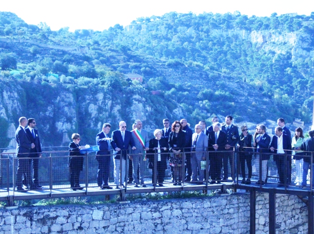 SAS Alberto II di Monaco, terminata la visita, ha proceduto a tagliare il nastro, unitamente al sindaco, Ignazio Abbate sull’ingresso del restaurato Castello dei Conti. Accompagnato dall’arch. Salvatore Tringali, direttore dei lavori che ha fatto da cicerone, il principe ha potuto ammirare l’ampiezza e la bellezza dei locali e di cortili mentre un gruppo del Liceo musicale di Modica diffondeva le arie del TE DEUM di Charpentier. Sulla pedana di ferro che perimetra l’area, ha potuto ammirare le scoperte emerse nel corso dei lavori come la Torre Normanna e le mura dell’antico maniero in una datazione attorno all’anno mille in avanti. Altra visita negli ipogei del Castello nel piano basso servito da comode scale e da ascensore.