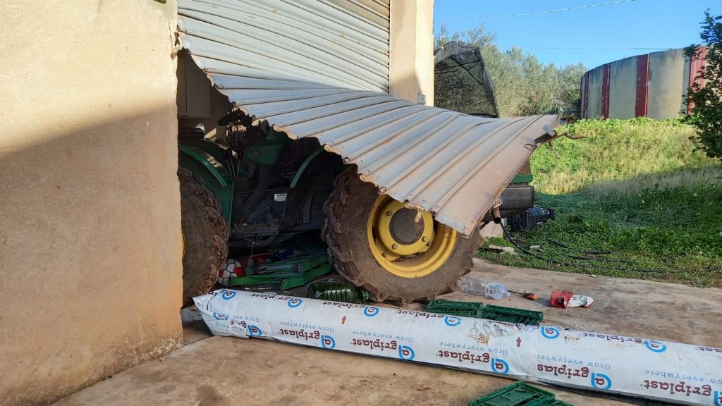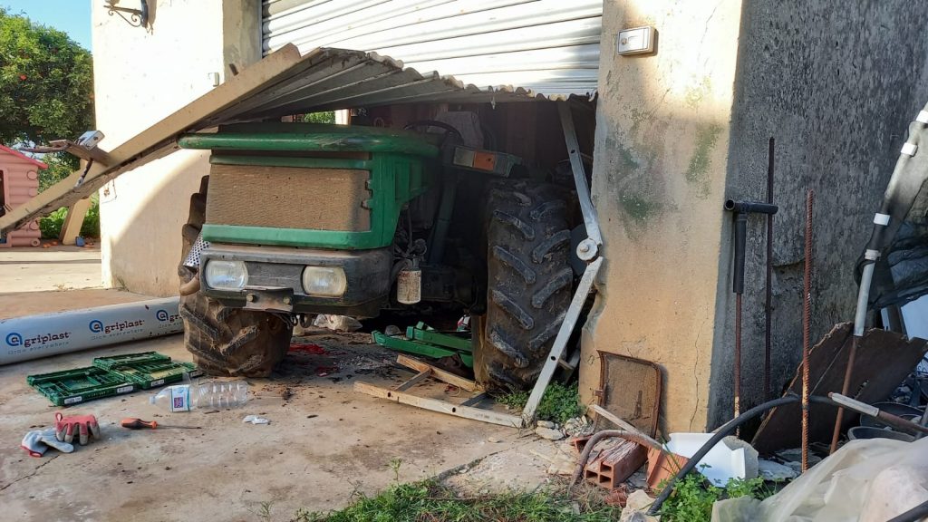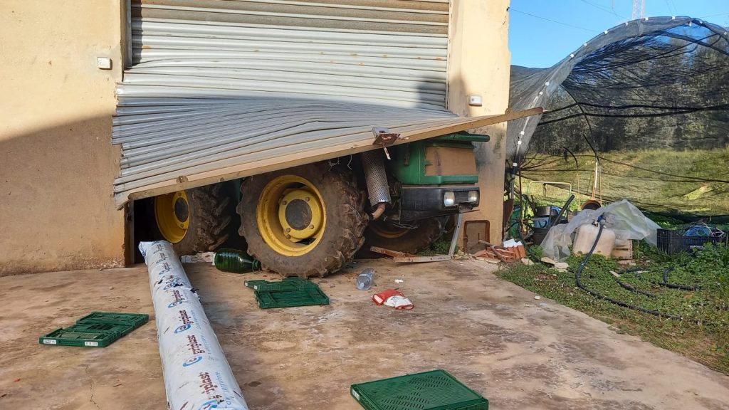 Hanno portato via attrezzature agricole, 200 litri di olio e altro. Poi, hanno usato il trattore come ariete per sfondare la saracinesca del garage, ma il mezzo è poi rimasto incastrato.