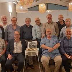 Il gruppo di Alunni nati tra 1954 e 1957 orgoglioso ad aver raggiunto l’obiettivo, dopo aver fatto un ampia rievocazione ed un lungo “Amarcod” di Felliniana memoria .