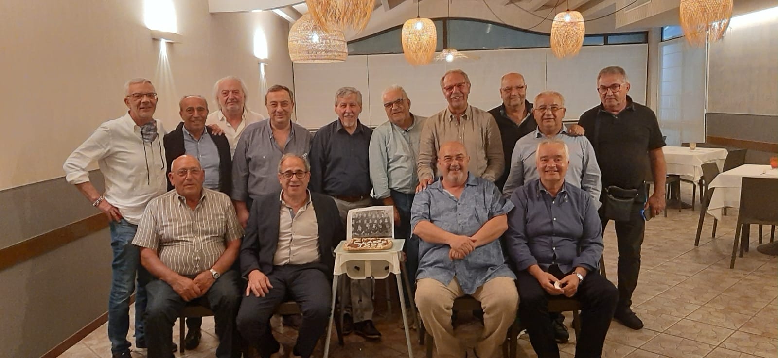 Il gruppo di Alunni nati tra 1954 e 1957 orgoglioso ad aver raggiunto l’obiettivo, dopo aver fatto un ampia rievocazione ed un lungo “Amarcod” di Felliniana memoria .