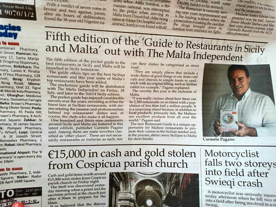Presente anche Noel Azzoppardi, direttore del noto giornale Indipendent che ha dato ampio spazio fra le sue colonne alla guida e con cui uscirà in allegato nei prossimi giorni, così come del resto ha già fatto in Sicilia, dove è uscita in allegato con il Sole24Ore. La Guida continuerà a viaggiare anche a bordo del catamarano della Virtu Ferries e dell’AirMalta per veicolare il messaggio di una grande professionalità e passione che cresce ogni giorno nelle cucine dei tanti ristoranti della Guida e che si manifestano ai commensali nei piatti serviti, oggi sempre più capaci di raccontare storie ed emozioni, facendo sempre emergere l’uomo, lo chef, che personalizza e rende uniche le ricette.