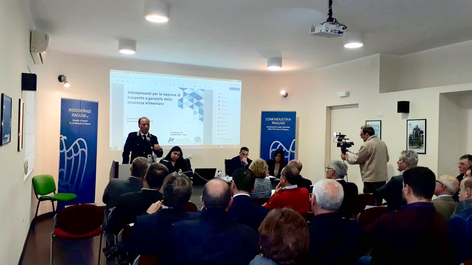 In Sicilia ogni anno viaggiano su strada 32 milioni di tonnellate di merce. Quasi un quinto di queste è costituto da prodotti agricoli o alimentari che, durante le fasi che vanno dalla produzione alla distribuzione e conservazione fino alla vendita, è soggetto a norme di tipo igienico-sanitario e al rispetto di particolari temperature (Accordo Atp). È di questo che si è parlato oggi, in Sicindustria Ragusa, in occasione del workshop “La filiera del freddo nell’autotrasporto: controlli a garanzia della sicurezza alimentare e stradale”, organizzato dall’associazione degli industriali in collaborazione con la Polizia di Stato (Comando provinciale Polizia Stradale).
