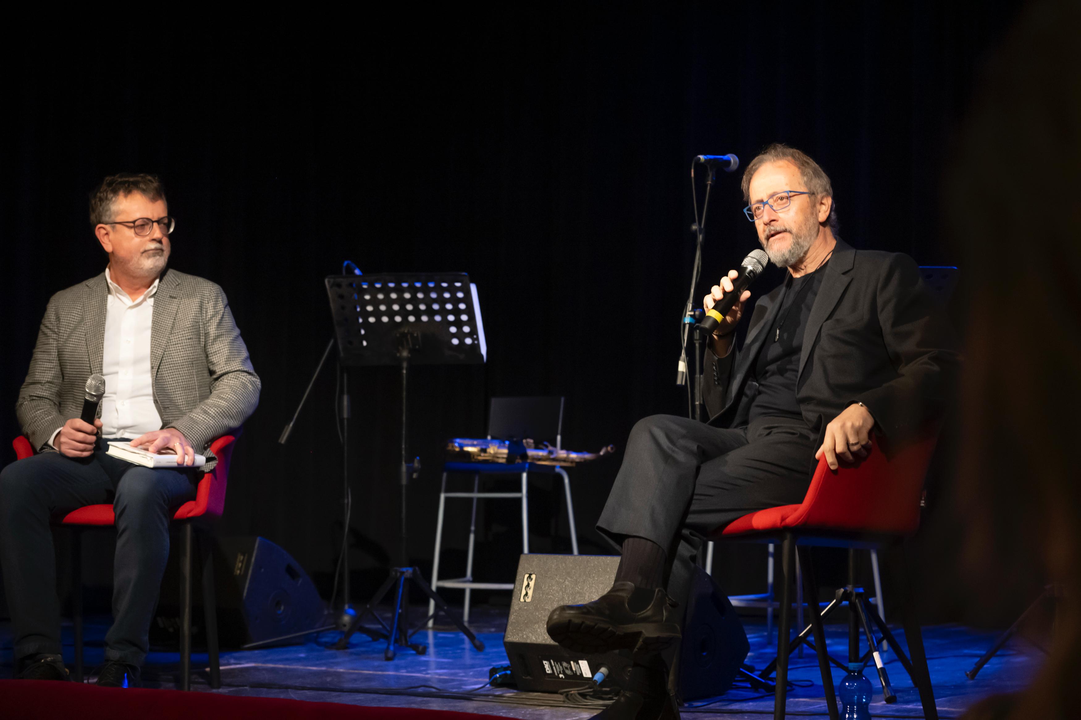 In serata, il Teatro Donnafugata ha cambiato registro con l’ironia e l’intelligenza tagliente di Diego De Silva, che ha presentato “I titoli di coda di una vita insieme” (Einaudi). L’autore, amatissimo per il personaggio di Vincenzo Malinconico, ha accompagnato la narrazione con un reading musicale componendo il Trio Malinconico assieme a Aldo Virgorito al contrabbasso e Stefano Giuliano al sax, in un dialogo serrato tra parole e jazz che ha trasformato il romanzo in una performance travolgente.
