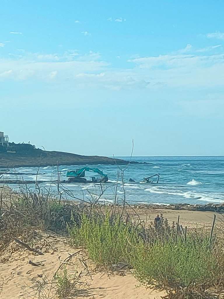 Nonostante di buon mattino tutte le maestranze che avrebbero dovuto dare il supporto nel recupero del relitto sono state sul posto, l’operazione è stata rinviata. Motivazione che ci ha confermato il sindaco Mario Marino, presente in questi giorni anche in spiaggia per monitorare quanto sta accadendo nella spiaggia di Bruca; motivazione legata alla necessaria presenza di una squadra di tecnici specializzati in interventi legati allo sversamento di carburante che arriva da Siracusa. Solo con la presenza di questo personale si potrà intervenire. Intervenire in sicurezza per evitare rischi ambientali che potrebbero compromettere la salubrità del mare. Un mare, quello ricadente nella spiaggia di Bruca, che è interdetto alla pubblica fruizione dalla scogliera a fino ad oltre 300 metri dello chalet “Stella Marina”. Stamane di buon mattino una gru è stata posizionata sul posto ma la rimozione non è iniziata nell’attesa della presenza dei tecnici specializzati. Tutto alla presenza della Capitaneria di porto che è stata in mare con una motovedetta.
