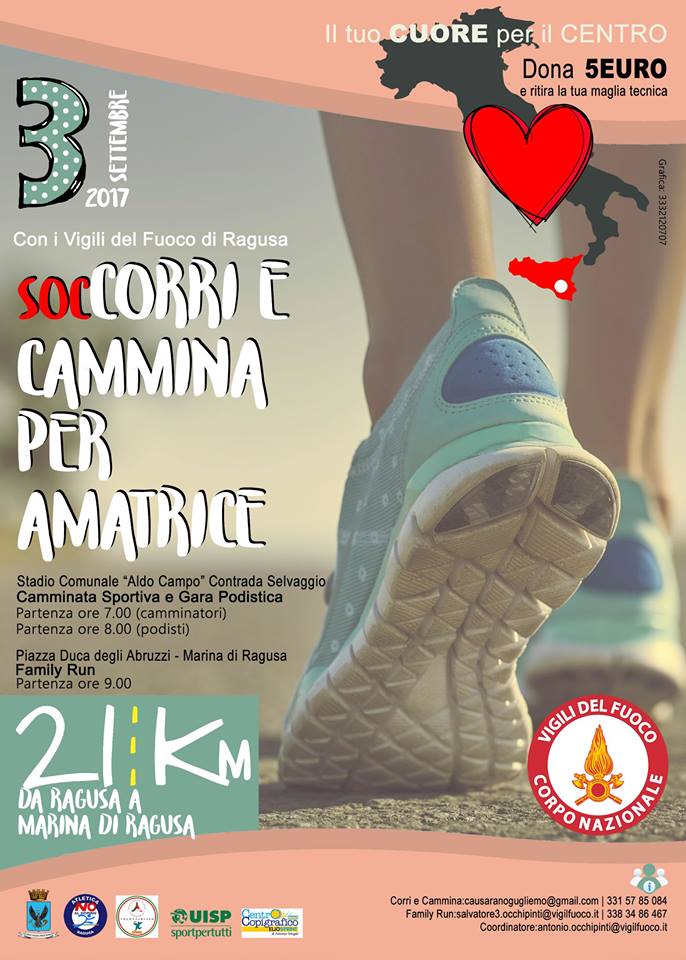 Maggiori info sulla pagina Facebook di “Soc…Corri e Cammina per Amatrice” www.facebook.com/VigilidelfuocoRagusa/