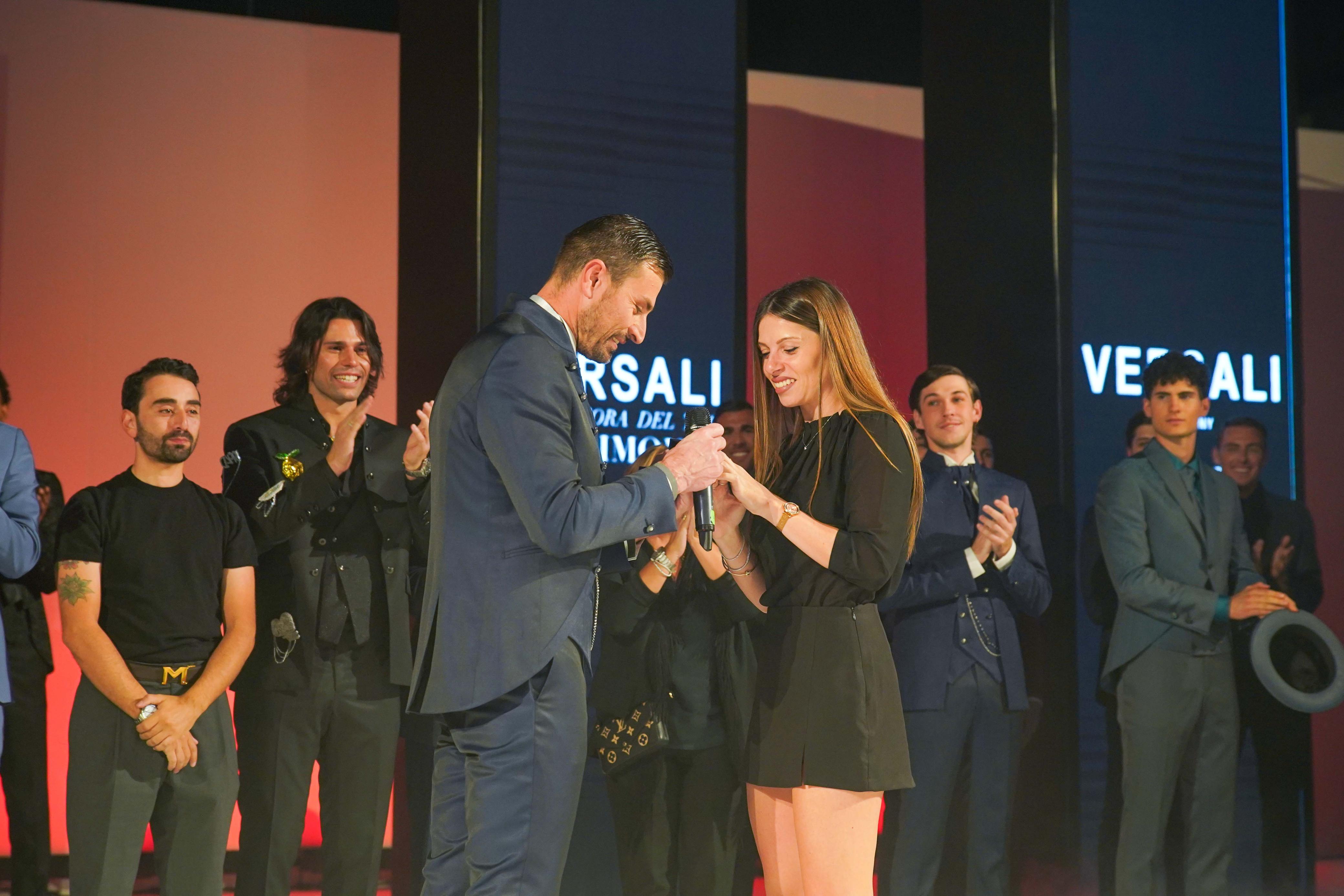 Un fuori programma romantico e inaspettato ha sorpreso gli spettatori della sfilata di Andrea Versali durante la terza giornata di Sposinlove, la manifestazione dedicata al mondo del wedding in corso al centro espositivo SiciliaFiera di Misterbianco. Nel bel mezzo della passerella, Andrea Mazzaglia, 38 anni, modello e protagonista di uno dei momenti clou dell’evento, si è inginocchiato per chiedere la mano della sua fidanzata, Roberta Rodelli, di 31 anni. Una proposta che ha incantato il pubblico presente, rendendo ancora più speciale un evento già denso di emozioni. “Mi è sembrato romantico chiederle la mano in un’occasione come quella di oggi”, ha raccontato Andrea. “Così, a fine sfilata, l’ho portata in passerella con me e le ho dato l’anello”. Roberta ha risposto con un deciso sì, circondata dall’applauso entusiasta del pubblico, degli organizzatori, e del testimonial Versali, Luca Onestini, presente in veste di ambasciatore del brand.