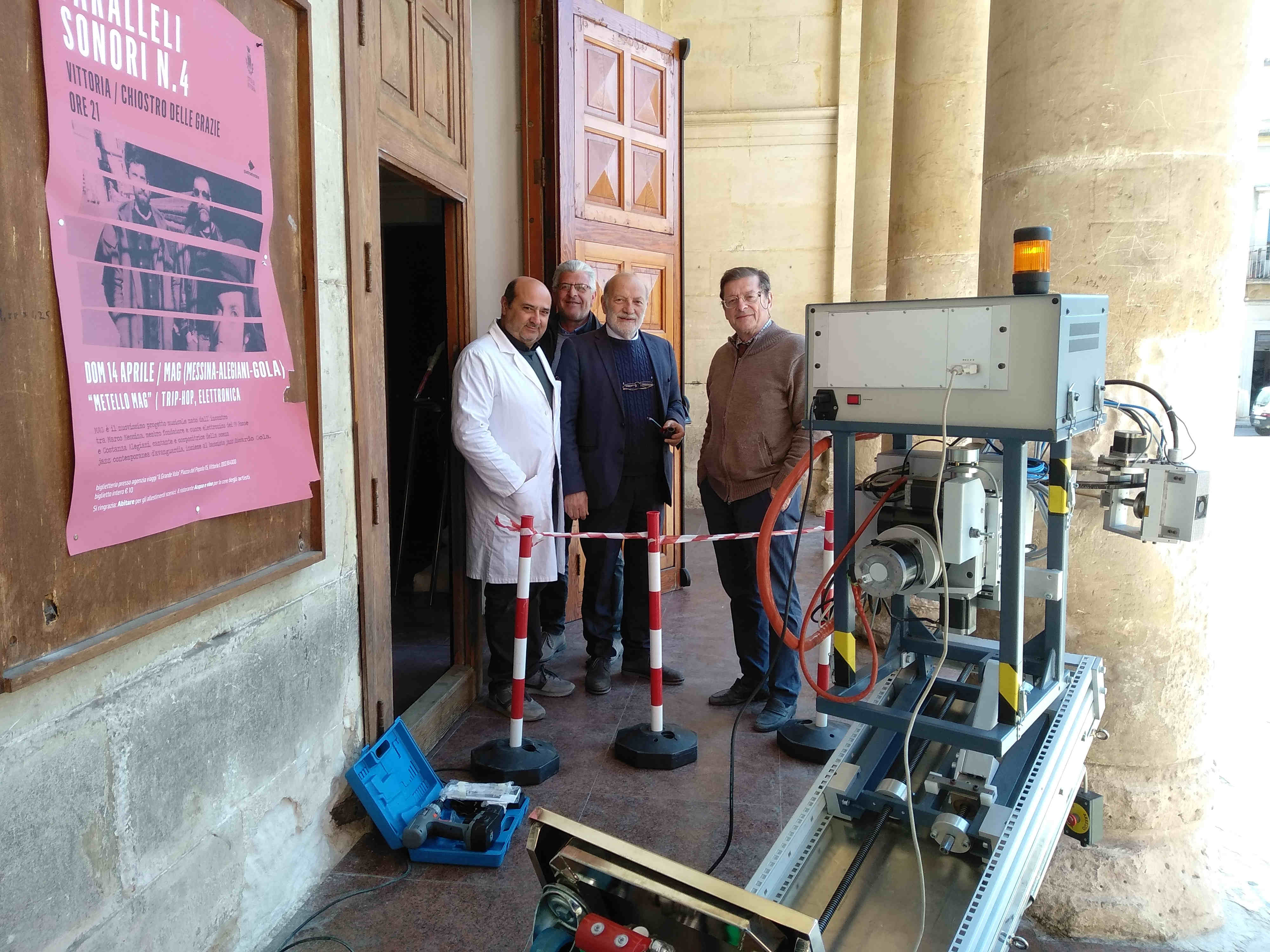 I tecnici specializzati hanno avviato i rilievi e le analisi con il diffrattometro portatile robotizzato, nel palazzo di Viale del Fante, sede della ex provincia regionale a Ragusa, e il 17 aprile nel teatro comunale “Vittoria Colonna” a Vittoria.