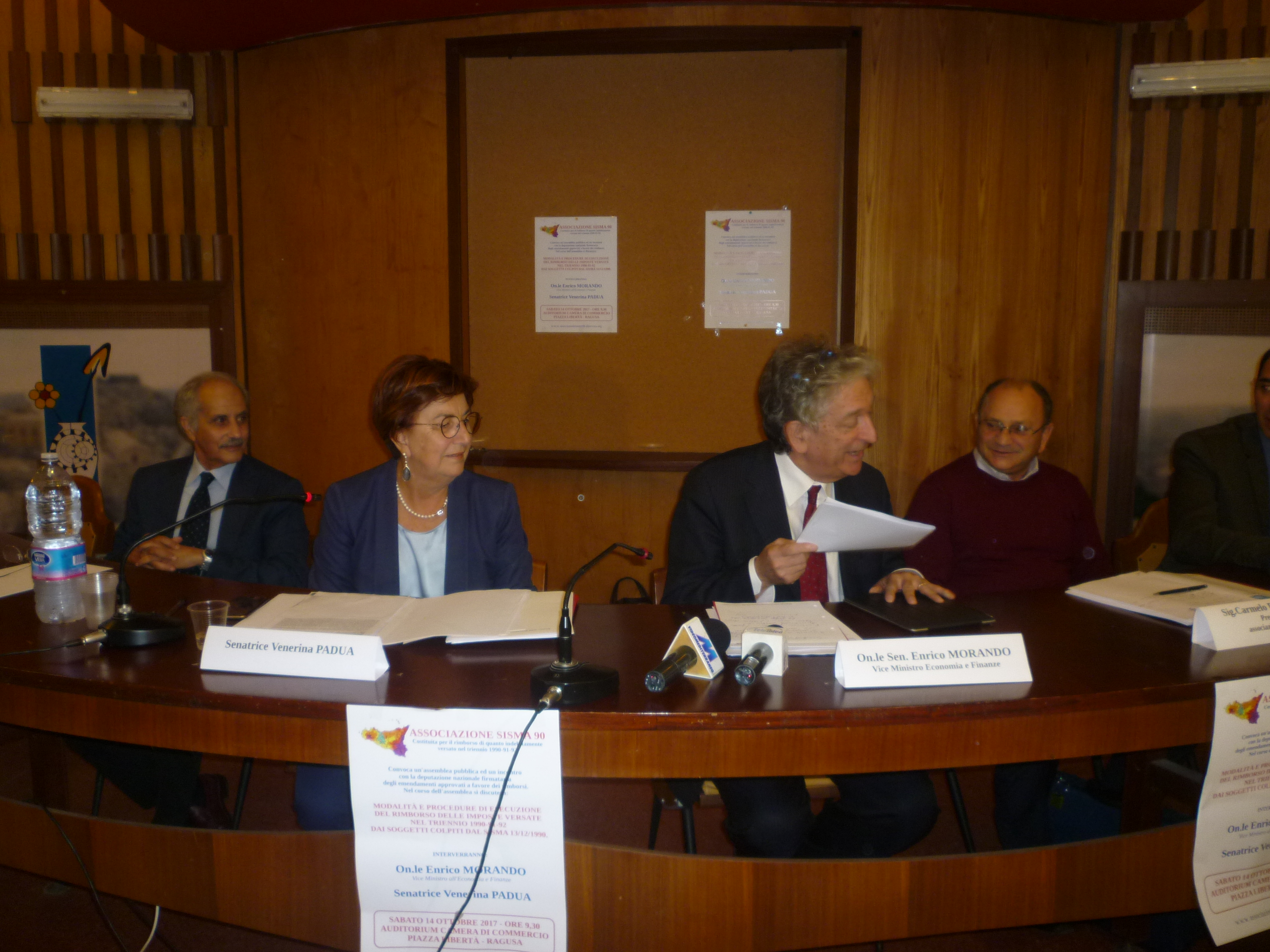 Auditorium della Camera di Commercio di Ragusa pienissimo sabato mattina per l’assemblea pubblica organizzata dall’Associazione di volontariato “Sisma 90”, costituita a Ragusa al fine di favorire iniziative divulgative rivolte alla piena attuazione della legge di stabilità 2015 che all’art. 1, comma 665, si esprime in favore dei soggetti colpiti dal sisma del 13 e 16 dicembre 1990, . L’associazione, con tale manifestazione, si è proposto di informare i contribuenti sulle ultime disposizioni di legge adottate in materia, le quali prevedono il rimborso del 90 per cento delle imposte versate indebitamente per il triennio 1990-1992. Hanno partecipato ed hanno relazionato sull’argomento tra gli altri la senatrice Venerina Padua, promotrice dell’approvazione della recente normativa ed il vice ministro dell’Economia e Finanze on. Enrico Morando. Ambedue si sono detti ottimisti sull’esito dell’applicazione della normativa anche se non al cento per cento dei rimborsi anche se parziali specie per quanto riguarda coloro che hanno avanzato ricorso ed hanno avuto senrtenza favorevole da parte degli organi giudiziari.