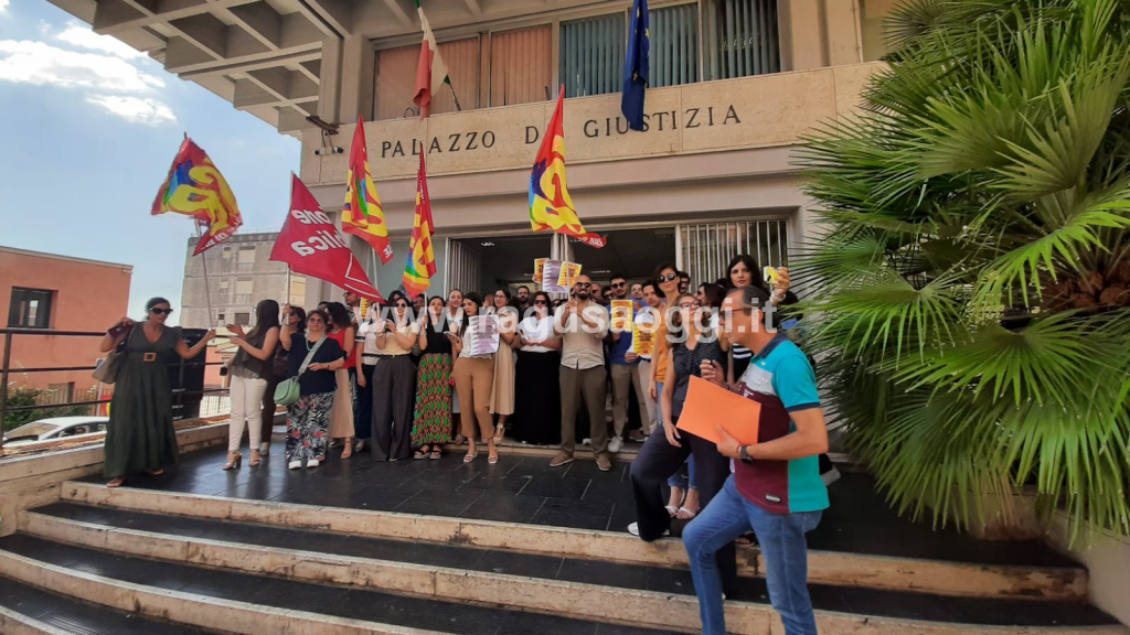 -28,0% della durata dei tempi processuali penali (obiettivo PNRR -25%). La mole di documenti digitalizzati riporta 5.800.000 fascicoli civili e penali digitalizzati, target finale di digitalizzazione di 7.750.000 fascicoli (con target intermedio già raggiunto). Lo spazio per operare nuove assunzioni per stabilizzare questi lavoratori c’è? Anche qui, dai numeri forniti dai manifestanti i margini vi sarebbero. “Attualmente, sono in servizio circa 34.000 dipendenti su una pianta organica prevista di 43.000 unità, evidenziando una scopertura di oltre 9.000 posti, intorno al 22-28%. Questa situazione crea difficoltà nel garantire l’efficienza e la tempestività della giustizia, sovraccaricando magistrati e personale amministrativo, e rischia di aggravarsi ulteriormente a causa di pensionamenti e turnover. A quest’ultimo proposito si rammenta che, secondo stime realistiche interne del Ministero della Giustizia, sono previsti fino a 26.400 pensionamenti nel periodo 2025-2035″. Alla manifestazione davanti al Tribunale di Ragusa erano ptesenti Usb, Cgil e Uil. Non nuovi bandi ma la stabilizzazione del personale già in servizio. Questo chiedono i lavoratori il cui contratto è in scadenza a giugno del prossimo anno, anche per garantire tempi di Giustizia adeguati.
