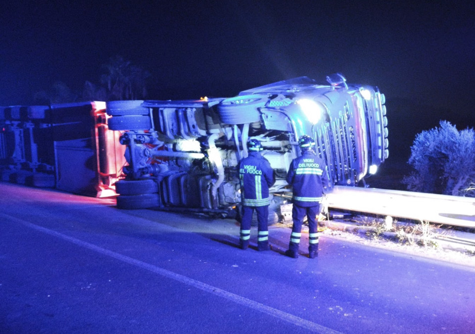 Intervento dei Vigili del Fuoco di Modica questa sera, intorno alle *21:20*, sulla *Strada Provinciale 49 Ispica–Pachino*, dove si è verificato un *incidente stradale autonomo* che ha coinvolto un *tir carico di ortaggi*.