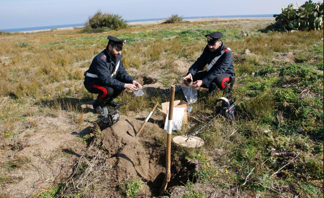 L’attività di controllo del territorio sulla fascia costiera intensificato in questa stagione per prevenire reati predatori, svolta nel pomeriggio di ieri ha visto impegnati numerosi militari, i quali, dopo aver intercettato i due soggetti in aperta campagna alla ricerca di reperti di interesse archeologico con metal detector professionali ed attrezzi specifici per gli scavi, li hanno sottoposti a perquisizione domiciliare nella città di Vittoria.