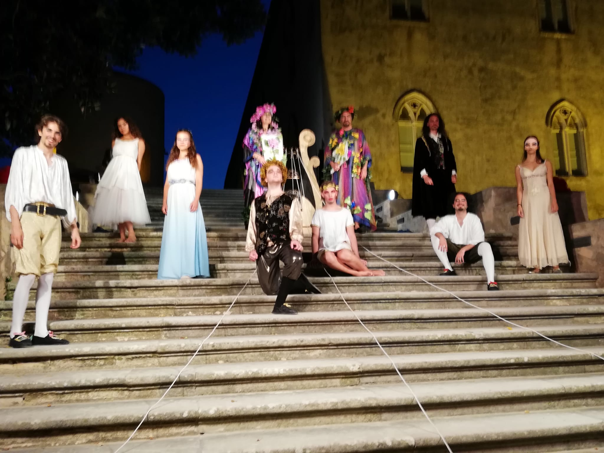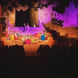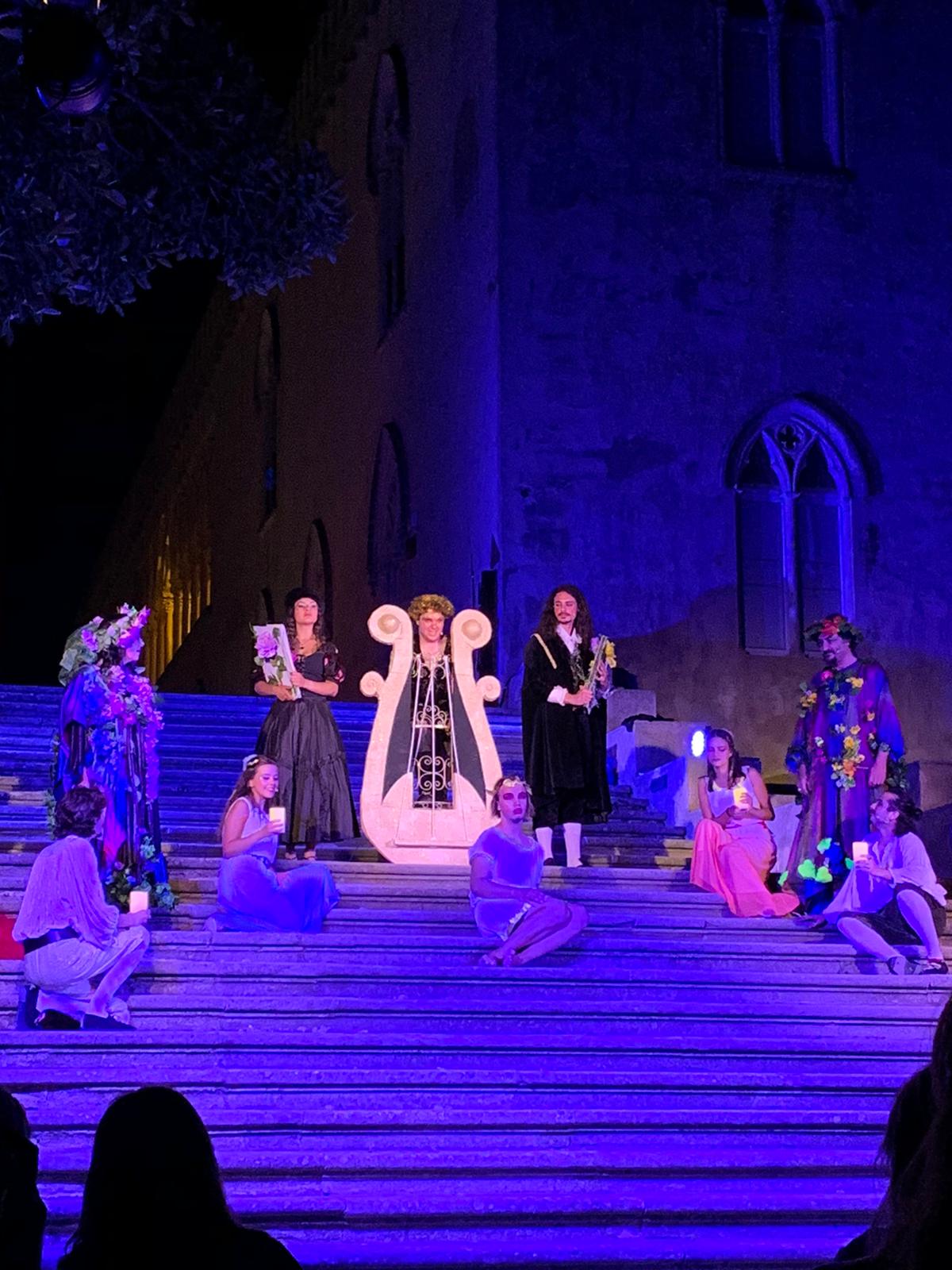 RAGUSA – La Compagnia G.o.D.o.T. di Ragusa continua a essere protagonista delle calde serate estive al Castello di Donnafugata. Dopo il successo delle precedenti date di luglio, accompagnate da lunghi applausi e sentito coinvolgimento, nei prossimi giorni si torna in scena nella scalinata interna del bellissimo maniero. Il 5 agosto e il 7 agosto (ore 21.30) la magia dei sonetti do Shakespeare coloreranno l’astmofera iblea dei toni dell’amore, dell’incanto, della fantasia, della passione. Con le ali dell’amore, il titolo dello spettacolo proposto dalla Compagnia, è un omaggio ad alcuni dei sonetti più belli tra i 154 scritti dall’autore inglese e ad alcune delle sue opere più emozionanti. La regia è di Vittorio Bonaccorso che cura anche le scelte musicali, Federica Bisegna firma testi e costumi e il maestro Pietro Cavalieri alcuni sonetti cantati. In scena Vittorio Bonaccorso, Federica Bisegna, Giuseppe Arezzi, Federica Giglielmino, Benedetta D’Amato, Lorenzo pluchino, Giuseppe Arrabito, Alessio Barone, Alessandra Lelli, Mario Predoana. Il 6 e l’8 agosto (ore 21.30) invece si ride con l’allegria e il buonumore di Cafè Comique, ambientato in un caffè dove camerieri zelanti hanno a che fare con personaggi assai strani.
