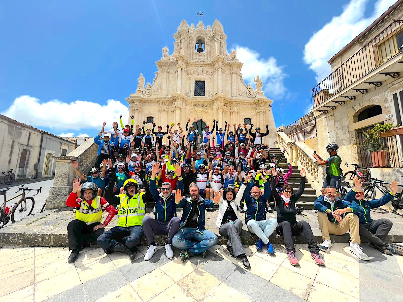 È ufficialmente partita la quarta ed attesa edizione del “Giro della Sicilia” la manifestazione sportiva dedicata al mondo delle due ruote che alterna turismo e competizione. L’evento, che come sempre propone sia tratti di vera e propria passeggiata in sella, sia quelli cronometrati che creano momenti di sana competitività, è ufficialmente partito stamani dal lungomare di Marina di Noto, località che farà da sfondo alle partenze di tutti gli stage previsti fino alla conclusione di venerdì 13 maggio. Numerosissimi gli appassionati sulla linea di partenza oggi per la prima tappa Buscemi che consentito di percorrere una settantina di chilometri tra i territori di Noto, Giarratana, Buccheri e Buscemi alternando ai tratti cicloturistici una crono di 7,6 chilometri e una crono sprint di 2,6. Calorosa accoglienza in piazza e sotto ai principali monumenti di Buscemi assieme al sindaco Rossella La Pira.