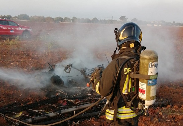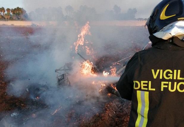 Ultraleggero precipita a Marina di Modica in fase di decollo. Pilota morto carbonizzato. FOTO