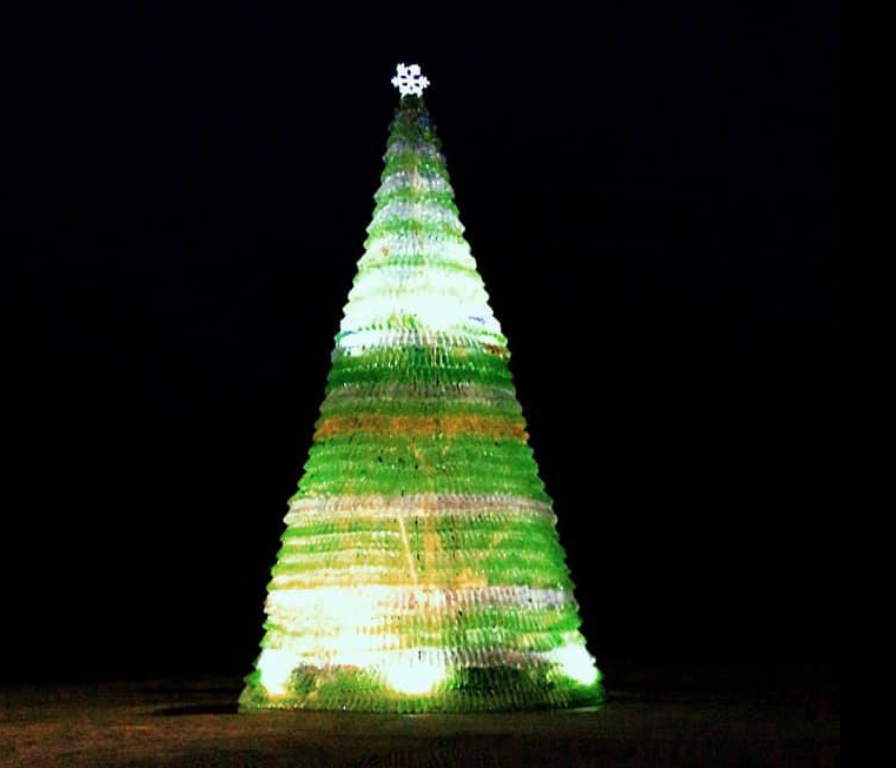 Un albero di 10 metri fatto di bottiglie di plastica. A Santa Croce Camerina splende di notte