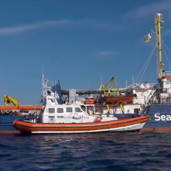 Con un blitz nella mattinata Nicola Fratoianni, segretario Si, i parlamentari Stefania Prestigiacomo (Fi) e Riccardo Magi (+Europa), e il sindaco di Siracusa Francesco Italia, sono saliti a bordo della nave ong Sea Watch di rada da due giorni davanti al porto di Siracusa.