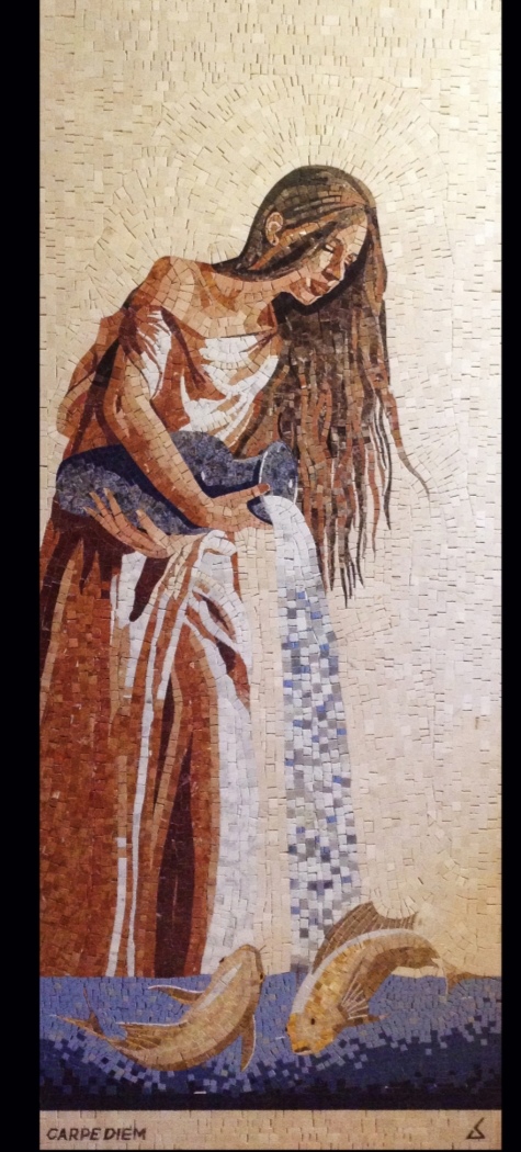 Eleganza e suggestione sono il risultato finale di questa tecnica che l’artista da tempo predilige in molti suoi lavori per lo più caratterizzati dal forte impatto cromatico. Questo mosaico, oggetto sicuramente unico e fatto ad arte, è un’opera musiva con la raffigurazione sacra del battesimo di Gesù ad opera di San Giovanni Battista, ed in cui il colore ha ceduto il passo alla luce aurea dell’insieme conferendo al mosaico la sacralità delle immagini. La raffigurazione pubblica dell’opera museale per il momento, fino alla svelata da parte del vescovo di Noto Mons Antonio Staglianò, sarà top secret per volere dell’artista.