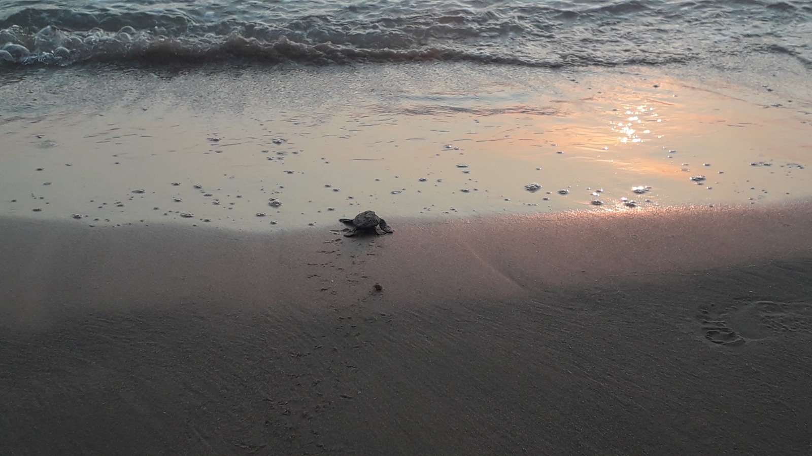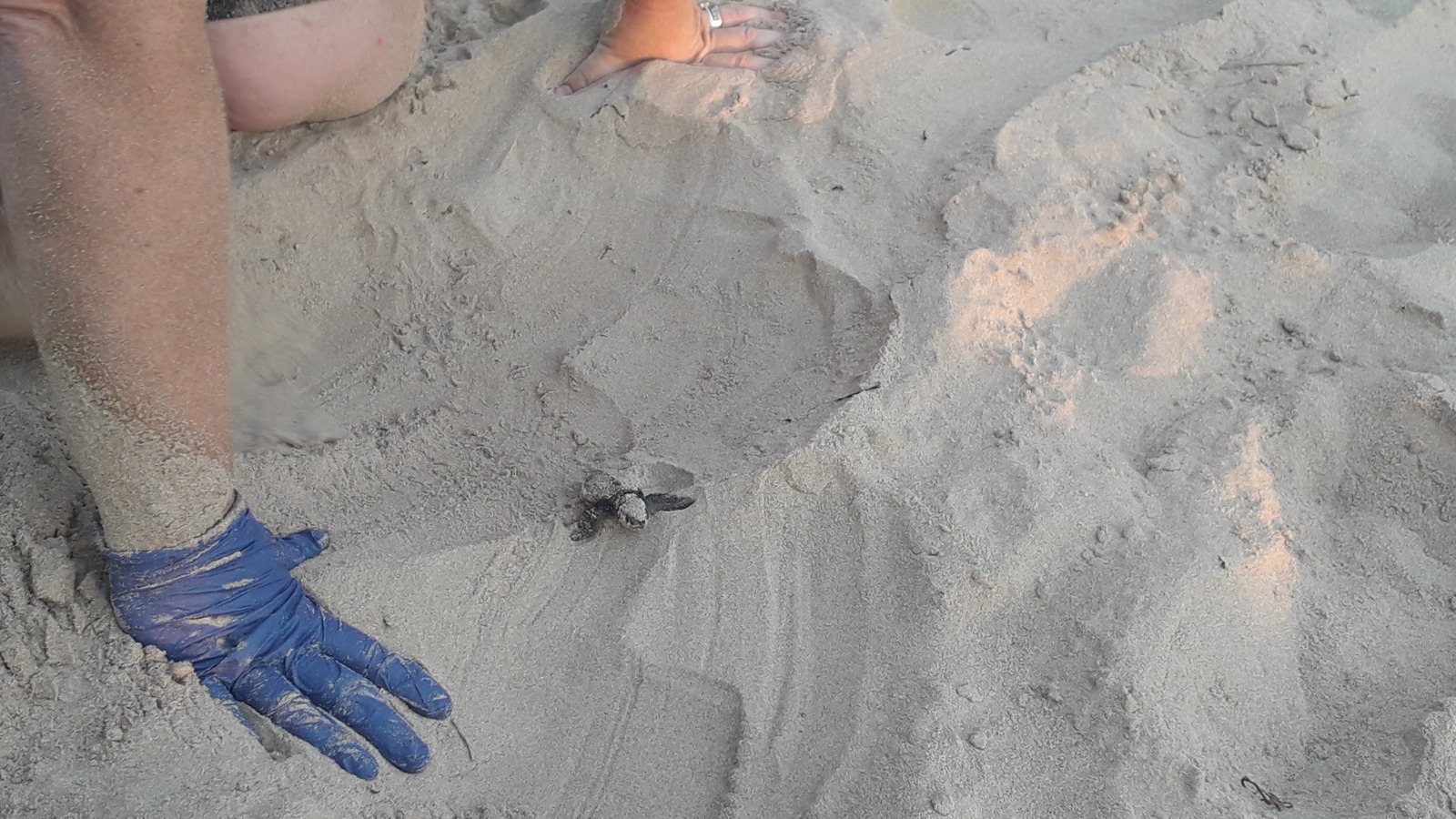 A Randello intorno a fine maggio (questo era stato deposto il 31 maggio) sono stati deposti 3 nidi. La schiusa avviene quasi sempre di notte e le tartarughine sono guidate dalla luce della luna, dalle onde del mare o come in questo caso dalla luce del sole motivo per cui gli operatori chiedevano alla gente di non far ombra per non disorientarle.