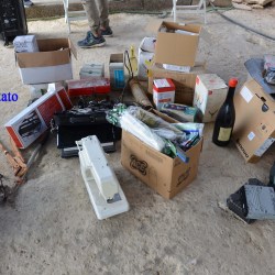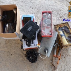 Tra le decine di oggetti rinvenuti vi sono: Televisioni, casse acustiche, tagliaerba, soffiatori, compressori, autoradio, coltelli da macellaio, ganci “appendi animali”, oggetti in oro, banconote di valuta estera, macchine da cucire, elettrodomestici da cucina di vario tipo, computer portatili di diverse marche, telefoni cellulari ed altri oggetti.