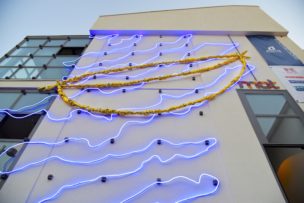 Forte il messaggio lanciato dall’artista Bracchitta durante l’opening: “La mia ricerca artistica va oltre i temi dell’attualità e delle polemiche politiche. In una location come quella del Met, dove ci si ritrova per momenti di convivialità, magari semplicemente per bere un drink, ho pensato che la nostra società guarda alle luci della festa di un mondo volutamente dorato, dove tutto è bello e buono. Le luci sono rassicuranti, ci fanno pensare che tutto vada per il meglio. Ma non è così, come sappiamo.