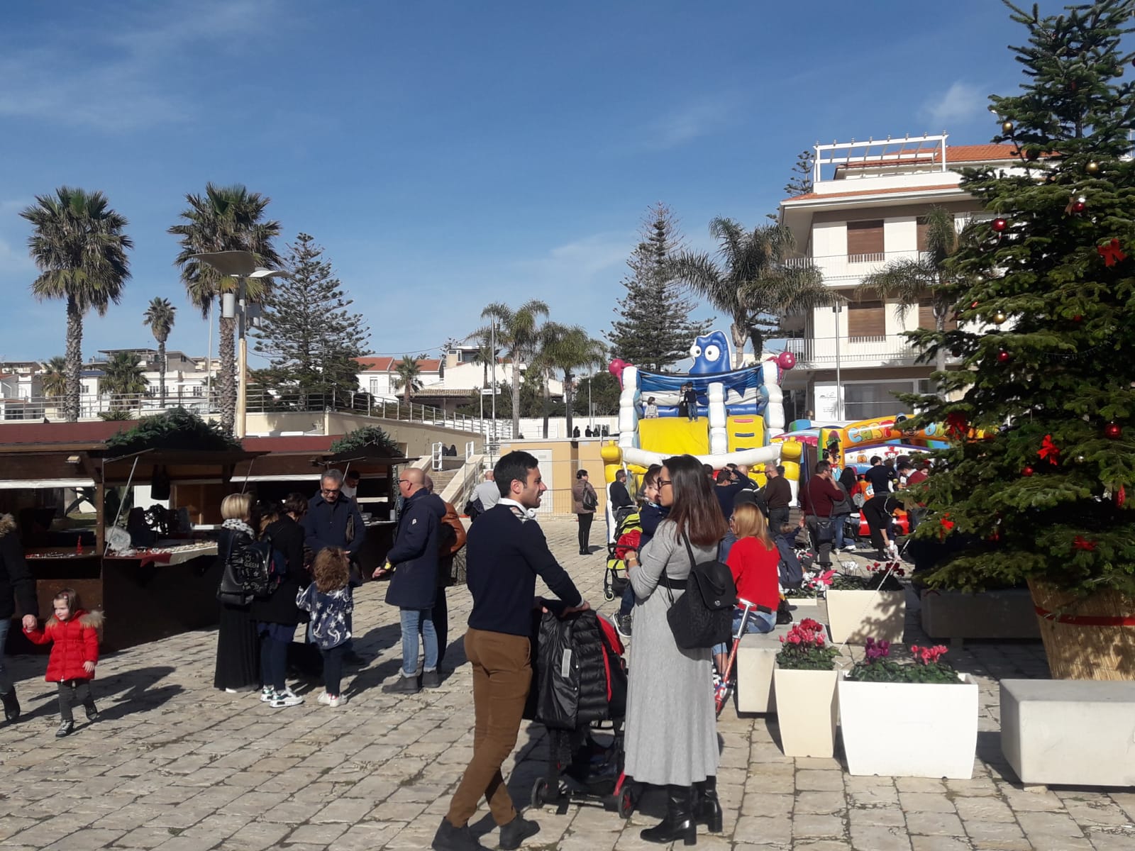 Una bellissima passeggiata in riva al mare, a Marina di Ragusa, tra simpatici mercatini natalizi, negozi dove fare lo shopping, bar dove prendere l’aperitivo ed ancora animatori, mascotte, trampolieri, e poi pranzo o cena nei locali di ristorazione. Questo e altro ancora è “Natale al Porto” che si è aperto questo fine settimana al porto turistico di Marina di Ragusa. Ieri il vento ha causato la riduzione del programma ma questa domenica, baciata da un sole caldissimo, in centinaia hanno raggiunto la piazza principale del porto dove è anche allestita la casetta di Babbo Natale e dove si trovano anche i gonfiabili gratuiti per i bambini. Un Natale al Porto che è dunque dedicato ancora una volta alle famiglie che possono dunque trascorrere il fine settimana piacevolmente, passeggiando all’aria aperta e facendo shopping. Una formula che si è già rivelato di successo.