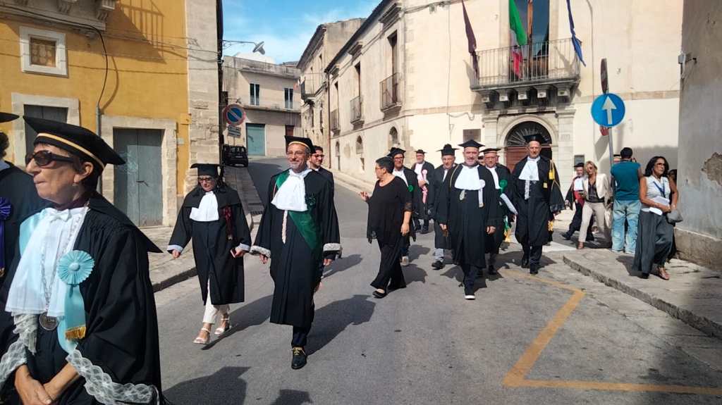 L’inaugurazione di Ragusa è stata la seconda delle tre previste per l’anno accademico in corso. Dopo la cerimonia di apertura svoltasi al Teatro greco-romano di Catania, la scelta di Ibla ha voluto sottolineare l’importanza strategica delle sedi decentrate per l’ateneo, in particolare di quella ragusana, che rappresenta uno dei fiori all’occhiello della presenza universitaria nel territorio ibleo. Il corteo accademico, composto dal rettore, dalla prorettrice Francesca Longo, dal direttore generale Corrado Spinella, dai presidenti delle Strutture didattiche speciali di Ragusa Stefano Rapisarda e di Siracusa Carmelo Nigrelli, dai presidenti della Scuola Superiore di Catania Daniele Malfitana e della Scuola di Medicina Pietro Castellino, ha sfilato lungo le stradine storiche di Ibla, partendo dall’aula magna del complesso di Santa Teresa, fino a raggiungere l’auditorium San Vincenzo Ferreri.