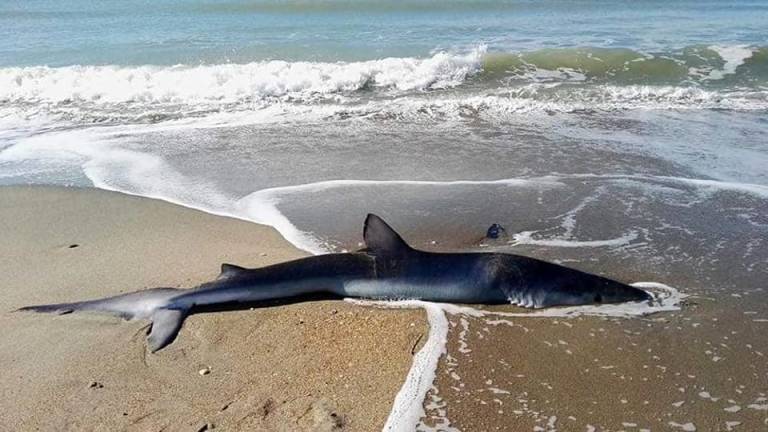 Uno squalo azzurro ritrovato spiaggiato sulla spiaggia di Arizza