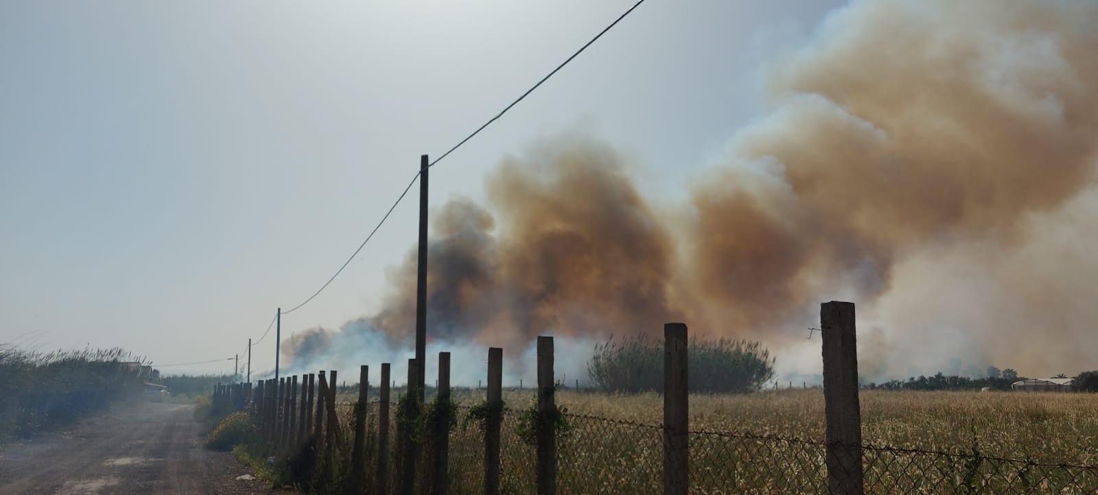 Fiamme alte più di due metri e un’intensa nube di fumo, stanno cicondando la zona rurale, abitata. Sul posto è già in opera il personale dei vigili del fuoco ma il caldo di queste ore unito a un forte vento di scirocco non aiuta le operazioni di spegnimento.