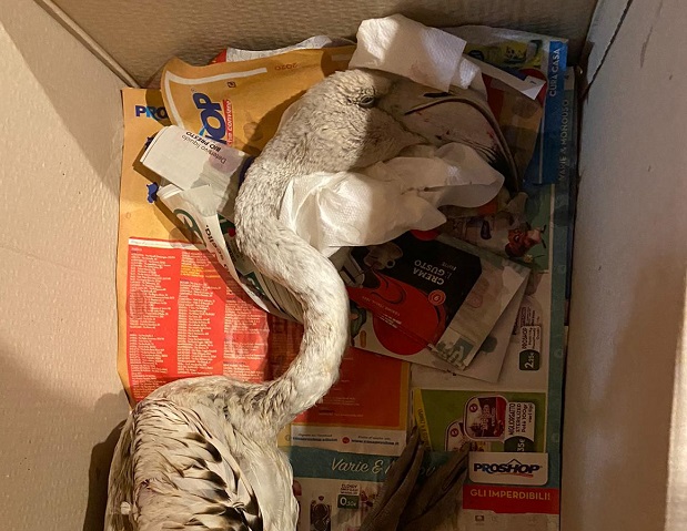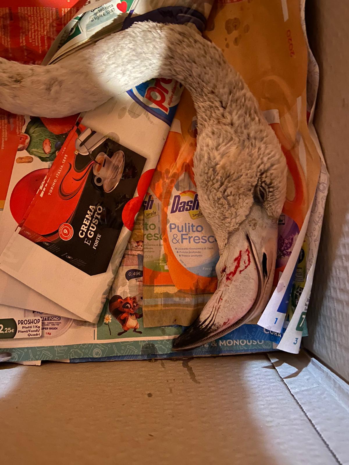 Vedete questo fenicottero? E’ morto. Nessuno l’ha soccorso ieri a Marina, solo una ragazza. L’odissea di una cittadina. FOTO