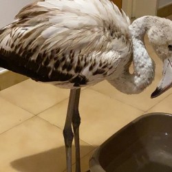 Al telefono, l’ENPA spiega che ormai si occupa della protezione soltanto di cani e gatti. Non è, dunque, un problema di loro competenza. A quel punto, sono stati immediatamente contattati i vigili urbani, anche su suggerimento dell’Enpa. I vigili urbani dichiarano al telefono di non poter intervenire e suggeriscono di chiamare il corpo forestale. Anche il corpo forestale, però, si dichiara non competente in materia. Suggerisce, piuttosto, di chiamare i carabinieri. I carabinieri richiamano la ragazza dopo 15 minuti e le dicono che non è loro competenza soccorrere un fenicottero. Le suggeriscono, invece, di chiamare i pompieri. Ma i pompieri rispondono che essendo domenica non vengono effettuati interventi di quel tipo. Disperata, dopo più di un’ora e mezza di telefonate a vuoto, sballottata da un’ufficio all’altro in un incomprensibile rimpallo di competenze, i pompieri suggeriscono a Chiara di portarsi il fenicottero a casa e che sarebbero poi andati a riprenderlo l’indomani mattina, cioè stamani, dopo le otto. Nel frattempo le danno il numero, presumibilmente, del servizio veterinario dell’Asp.