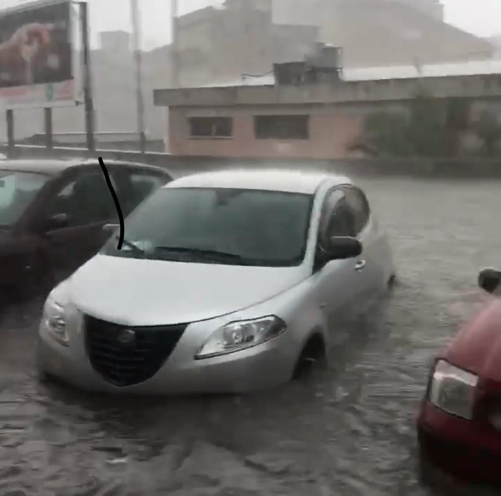 Il violento temporale di oggi ha provocato notevoli disagi: siamo all’inizio della via Archimede, zona Chiesa Sacra Famiglia, a Ragusa: qui, l’acqua ha sommerso letteralmente le acque invadendo anche alcuni uffici, negozi e alcune abitazioni.