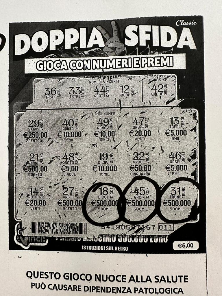 Una maxi vincita da 500.000 euro al Gratta e Vinci. È accaduto a Comiso, nella tabaccheria gestita da Mirko e Ilenia Nannaro, in corso Ho Chi Min.