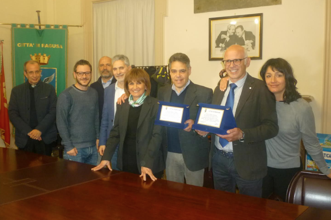 Sabato a mezzogiorno l’assessore dott. Giovanni Iacono ha presieduto la breve ma intensa cerimonia di consegna ai medici Giorgio Lo Magno e Raffaele Bennardo delle targhe per il lavoro di volontariato svolto presso l’Aiad di Ragusa. Presenti il direttore generale dell’ASP Arch. Angelo Aliquò e la presidente dell’AIAD dott.ssa Gianna Miceli che sono intervenuti ambedue per significare il ruolo dei due medici la, semplice cerimonia si è svolta alla presenza di un nutrito gruppo di assistiti dall’Associazione antidiabetica che hanno avanzato la richiesta al Comune di Ragusa di avere una sede più adeguata alle esigenze degli assisti sia come struttura che come sito. I due medici premiati hanno ringraziato sia l’Asp che il Comune che ha avuto questa attenzione nei loro confronti per il lavoro di volontariato che hanno svolto e svolgono per i cittadini diabetici. Franco Portelli