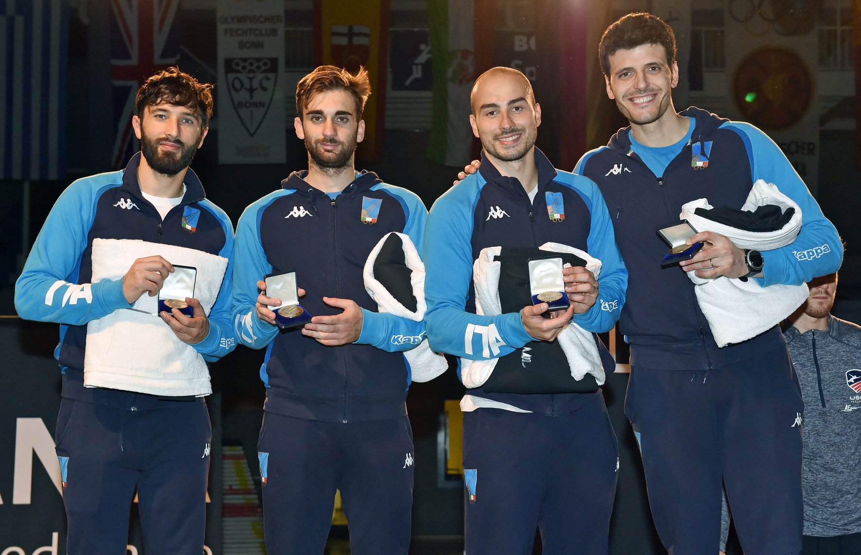 Apertura “d’argento” per la squadra italiana di fioretto maschile a Bonn (GER), nella nuova stagione di Coppa del Mondo 2018/219. I campioni del mondo in carica Avola, Cassarà, Garozzo e Foconi, entravano in gara a partire dagli ottavi di finale dove superavano facilmente il Canada per 45/22. Ai quarti con qualche difficoltà in più uscivano vincenti per 45/43 contro la squadra di Hong Kong. In semifinale affrontavano i “cugini” francesi in un incontro, come spesso accade, molto duro e combattuto, con diversi capovolgimenti di fronte, che alla fine ha visto prevalere il team azzurro per 45/40. Finale per il primo posto contro gli Stati Uniti, in quella che oltre ad essere la rivincita del mondiale, sta diventando una classica anche in Coppa del Mondo. Dopo un primo giro di assalti che vedevano l’Italia avanti, gli americani rimontavano e chiudevano con un netto 45/32. Una medaglia d’argento molto importante, perché indice di grande continuità per la squadra italiana di fioretto maschile, in prospettiva di qualificazione olimpica. Infatti la qualifica a Tokyo2020 avverrà con le gare a squadre, e solo i paesi con le squadre qualificate avranno i tre pass anche per la gara individuale.